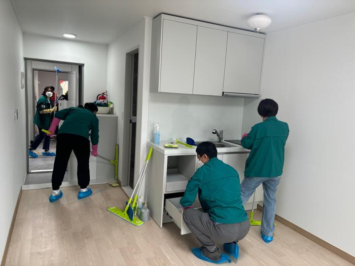 도는 17일 경북청년봉사단, 경북청년CEO협회 회원, 경북도 청년센터, 도 청년정책과 직원 등 50여 명이 산불 피해를 본 안동시 일직면을 방문해 이재민이 첫 입주하게 될 모듈러 주택(18동)에 대한 청소 봉사활동을 펼쳤다.