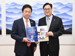 경북도 이철우 도지사는 23일 국회를 방문해 우원식 의장, 주호영 부의장 등 국회 주요인사를 연이어 만나 산불특별법 국회 통과와 산불 피해복구 및 APEC 추경 예산 반영을 건의했다.
