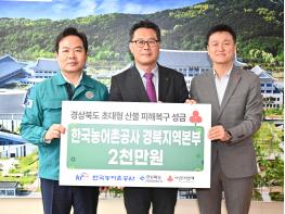 한국농어촌공사 경북지역본부가 24일 경북도청을 방문해, 경북지역 산불 피해 이재민을 돕기 위한 성금 2,000만원을 전달했다.