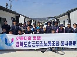 경북도청공무직노동조합(위원장 장승권) 간부 및 조합원 23명은 지난 25일 안동 산불 피해지역 봉사활동을 펼쳤다고 27일 밝혔다. 또한, 지난 8일에는 산불피해로 큰 아픔을 겪고 있는 주민들을 위해 성금을 모금해 전달하기도 했다.