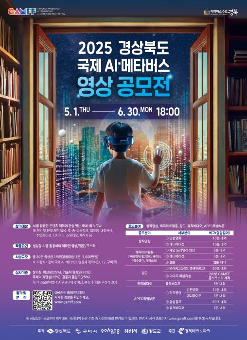 5.1.~6.30. 접수, ‘2025 경북 국제 AI·메타버스 영상 공모전’ 열어