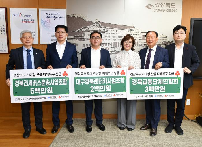 3월 발생한 경북 5개 시군 초대형 산불피해 복구와 이재민 구호를 위한 각계의 지원 손길이 지속되고 있는 가운데 경북 도내 교통단체에서도 성금 기부 릴레이가 이어지고 있다.