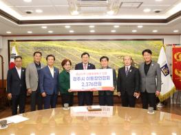 | 경주시 이통장연합회는 지난달 21일 경주시를 찾아 영남지역 대형 산불로 피해를 입은 이재민들을 돕기 위해 성금을 기탁했다./경주시 제공 |