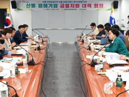 경북도는 20일 도청 회의실에서 대구경북지방중소벤처기업청, 중소벤처기업진흥공단, 소상공인시장진흥공단, 신용보증기금, 기술보증기금, 경북경제진흥원, 경북신용보증재단 등 관계기관과 시중은행 관계자가 참석한 가운데 ‘산불 피해기업 금융지원 대책 회의’를 개최했다.