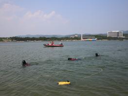 훈련에는 구조 보트 ․ 첨단 수중 로봇 ․ 수난 구조장비 등 총 84점의 구조장비가 투입되었으며, ▴수난사고 유형별 구조기법을 적용한 인명구조 ▴원형탐색 등 수중 탐색 및 인양백 활용법 ▴출동로 및 인근 지형지물 확인 등의 실전 중심의 적응 훈련이 전개됐다.