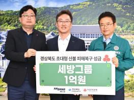 세방그룹이 29일 경북도청을 방문해 경북 북부지역 산불 피해복구와 이재민 지원을 위한 성금 1억원을 전달했다.