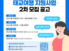 이번 사업은 경북도에 거주하는 임신부 대상으로 지역 내 어촌계 및 내수면 어업계 법정리에 소재하는 숙박시설을 이용하여 여행하는 경우 숙박비(최대 20만원 내 실비 지원)와 교통비(10만원 농촌 사랑 상품권), 태교 여행 앨범 제작 등을 지원하는 사업으로 경북도 ‘저출생과 전쟁 시즌2 150대 과제’의 하나다.