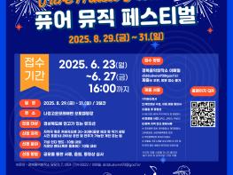 경북도와 경주시, 한국수력원자력, 경북문화재단 콘텐츠진흥원은 8월 29일부터 31일까지 3일간, 경주시 나정고운모래해변 오토캠핑장과 더케이호텔 야외광장 일원에서 개최되는 ‘경주 국제 퓨어 뮤직 페스티벌’에 참가할 지역 뮤지션을 모집한다고 12일 밝혔다.
