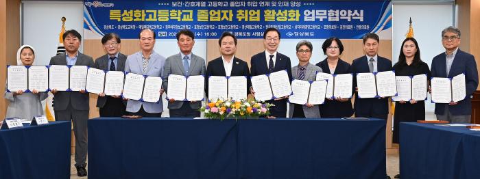 협약에는 경북도와 경북도교육청을 비롯해 ▵예일메디텍고등학교 ▵경주여자정보고등학교 ▵효청보건고등학교 ▵포항보건고등학교 ▵경산제일고등학교 ▵한국미래산업고등학교 ▵상지미래경영고등학교가 참여했으며, 도 지방의료원인 ▵포항의료원 ▵김천의료원 ▵안동의료원에서도 함께 했다.