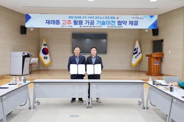 기술이전받은 영양군농업기술센터는 농산물가공지원센터를 운영하며, 가공제품 생산 장비와 시제품 제작 인프라를 활용해 농가 교육과 제품화를 지원하고 있으며, 이번 기술이전으로 창업 활성화와 지역 고추 소비 확대 등 실질적인 경제 효과가 기대된다.