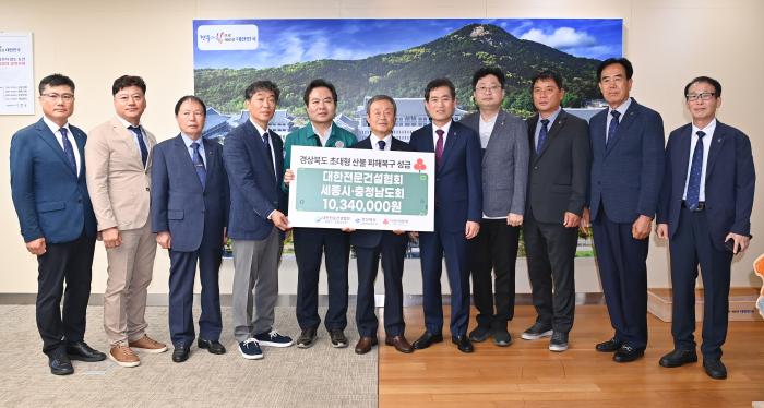 대한전문건설협회 세종시·충청남도회가 20일 경북도청을 방문해 경북 초대형 산불 피해복구 성금 1,034만 원을 전달했다고 22일 밝혔다.