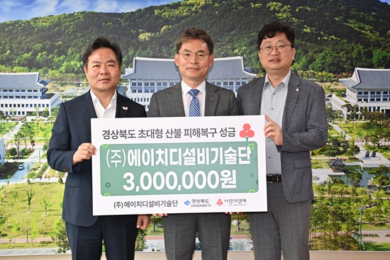 ㈜에이치디설비기술단이 24일 경북도청을 방문해 경북 북부지역 산불 피해복구와 이재민 지원을 위한 성금 300만원을 전달했다.