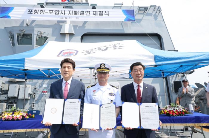 포항시는 28일 대한민국 해군 1함대사령부 포항함(FFG)과 자매결연 협약을 체결하고, 해양 문화와 안보 협력의 중심도시로서 관·군 상생 발전에 나섰다.
