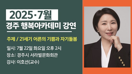 경주시는 시민의 평생학습 기회 확대와 삶의 질 향상을 위해 오는 22일 오후 2시부터 4시까지 서라벌문화회관에서 ‘7월 시민과 함께 하는 경주행복아카데미’를 개최한다고 7일 밝혔다.