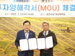 경주시는 23일 시청 대외협력실에서 태영테크㈜와 투자양해각서(MOU)를 체결하고, 본격적인 사업 추진에 나선다고 밝혔다.