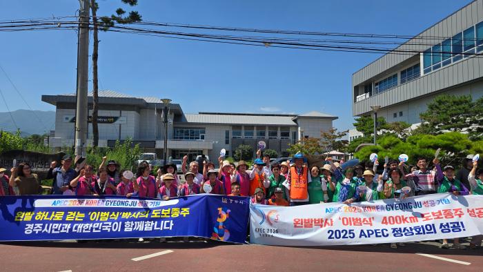 2025년 아시아태평양경제협력체(APEC) 정상회의의 성공 개최와 동서화합을 기원하며 국토 종주 중인 이범식 왼발박사가 24일 APEC 개최도시인 경주에 입성했다.