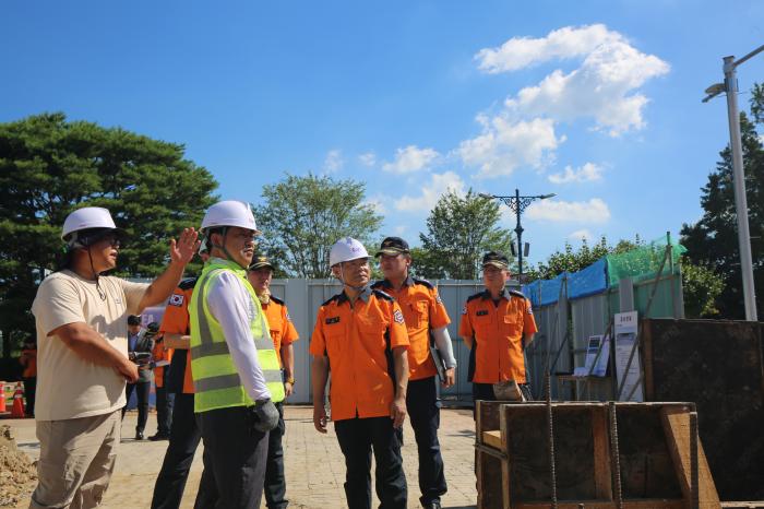 이번 점검은 공사 중인 만찬장과 미디어센터의 화재 예방 상태는 물론, 행사장 주요시설과 피난·구조설비 등 전반적인 안전 요소에 대한 점검에 집중되었으며, 사고 발생 시 신속한 현장 대응이 가능하도록 각종 준비 사항을 철저히 살폈다.