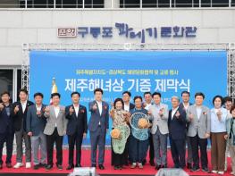 지난 6일 포항 구룡포 과메기문화관 잔디광장에서 제주특별자치도지사가 포항시에 기증한 ‘제주해녀상 제막식’과 ‘동백나무 기념식수 행사’를 열고 역사적 인연과 문화적 유대를 재확인했다.