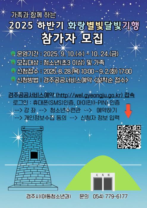 신청은  28일 오전 10시부터 9월 2일 오후 5시까지 경주공공서비스예약 홈페이지를 통해 선착순으로 접수한다.