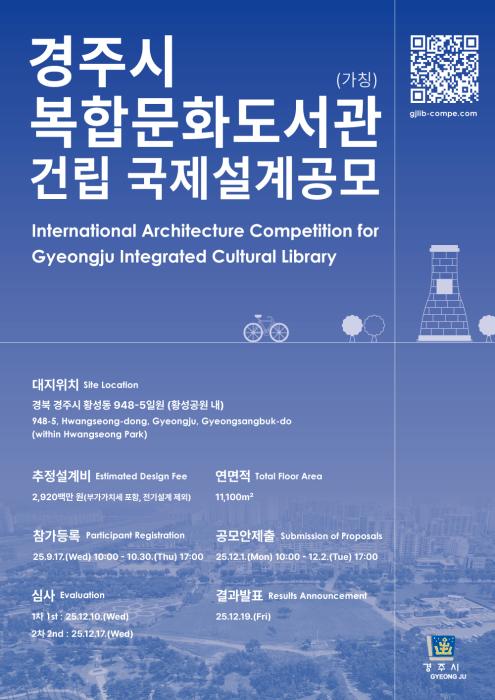 참가 등록은 오는 9월 17일부터 10월 30일까지 경주시 복합문화도서관 국제설계공모 홈페이지(https://www.gjlib-compe.com)를 통해 가능하다.