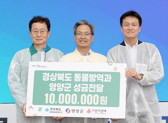 또한, 이날 가상방역훈련과 함께 경상북도는 농림축산식품부의 2025년 지자체 가축방역 평가에서 받은 포상금 1천만원 전액을 영양군 산불 피해 복구 성금으로 기부하는 전달식도 가졌다.