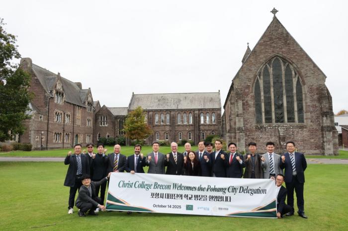 이강덕 포항시장과 임주희 포항시의회 경제산업위원장을 비롯한 포항시 대표단은 지난 14일(현지시간) 영국 왕립학교 ‘크라이스트 칼리지 브레콘(Christ College Brecon, 이하 CCB)’을 방문해 마이클 데이비스 이사장과 가레스 피어슨 교장을 만나 포항국제학교 설립 협력 방안을 논의했다.