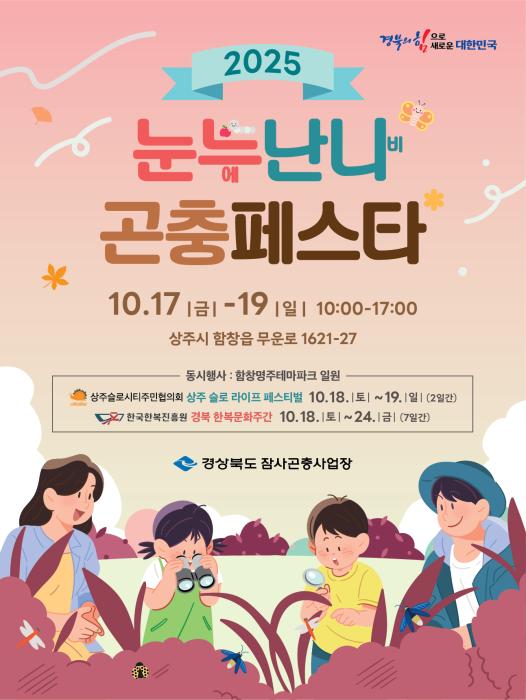 경북도 잠사곤충사업장은 17일~ 19일 3일간 잠사곤충사업장 일원에서‘2025 눈누(에)난나(비) 곤충페스타’를 개최한다.