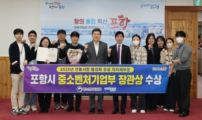 포항시가 중소벤처기업부 주관 ‘2025년도 전통시장 활성화 유공 포상’에서 우수기관으로 선정돼 중소벤처기업부 장관 표창을 수상했다.