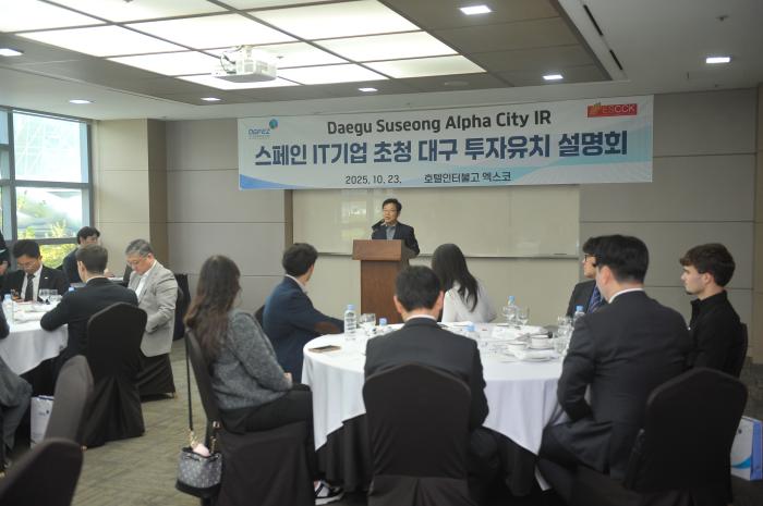 대구경북경제자유구역청(청장 김병삼, 이하 DGFEZ)은 10월 23일 오전 11시, 호텔인터불고 EXCO에서 주한스페인상공회의소(회장 Roger Royo, 이하 ESCCK)와 공동으로 스페인 IT기업을 초청한 대구 투자유치 설명회를 개최했다.