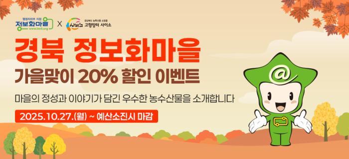 경북도는 도내 정보화마을의 우수 농수산물 판로 확보와 홍보를 위해 27일부터 경북고향장터 ‘사이소’ 테마관에서 ‘경북 정보화마을 우수 농수산물 가을맞이 할인전’을 개최한다.