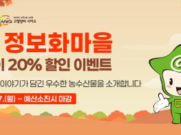 이번 할인 행사는 본격적인 수확철인 가을을 맞아 사과, 포도, 감, 대추, 잡곡, 꿀, 마늘, 홍게, 오징어 등 도내 정보화마을의 우수한 농수산물을 시중가보다 20% 할인된 가격에 판매한다.