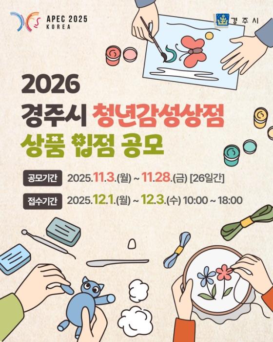 경주시는 지역 청년 창작자의 참신한 아이디어를 발굴하고, 이를 상품화해 경주만의 문화 브랜드로 확산하기 위한 ‘2026 청년감성상점 상품 입점 공모전’을 개최한다.
