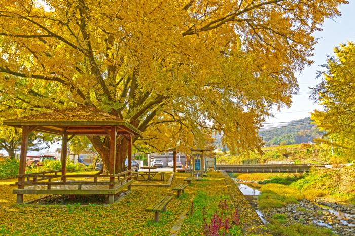 강동면 왕신리의 운곡서원 은행나무는 매년 11월 초·중순이면 황금빛으로 물드는 장관을 이룬다.