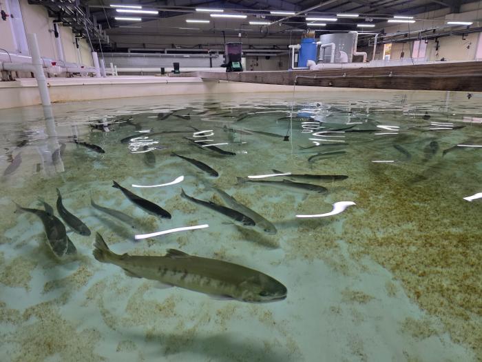 연구원은 우리나라에 산란을 위해 회유하고, 수정란을 수입할 필요 없는 연어 양식을 산업화하기 위해 2022년 민물고기연구센터에서 국내 하천에 회유한 연어로부터 생산한 어린 연어(전장 5cm, 체중 1g급)를 확보해 담수 사육 후 점진적으로 해수에 적응시켜 관리했다.
