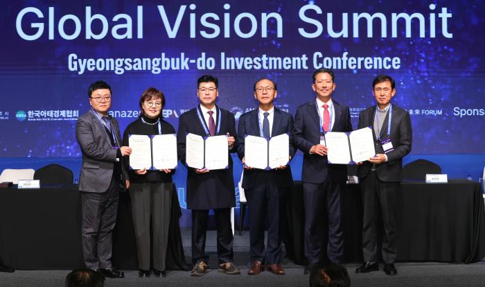 이날 체결식은 APEC 후속 국제포럼의 일환으로 각국의 투자환경을 공유하는 ‘글로벌 비전 서밋’ 연계 투자대회 자리에서 열렸으며, 양금희 경상북도 경제부지사, 김장호 구미시장, ㈜코람코자산운용 김태원 대표이사, ㈜호암글로벌 이우호 대표를 비롯해 행사에 참석한 관계자 등 700여 명이 함께했다.