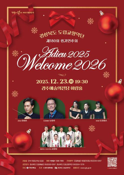 경북도 도립교향악단이 23일 경주예술의전당 화랑홀에서 제180회 정기연주회 ‘아듀 2025! 웰컴 2026!’를 개최한다.
