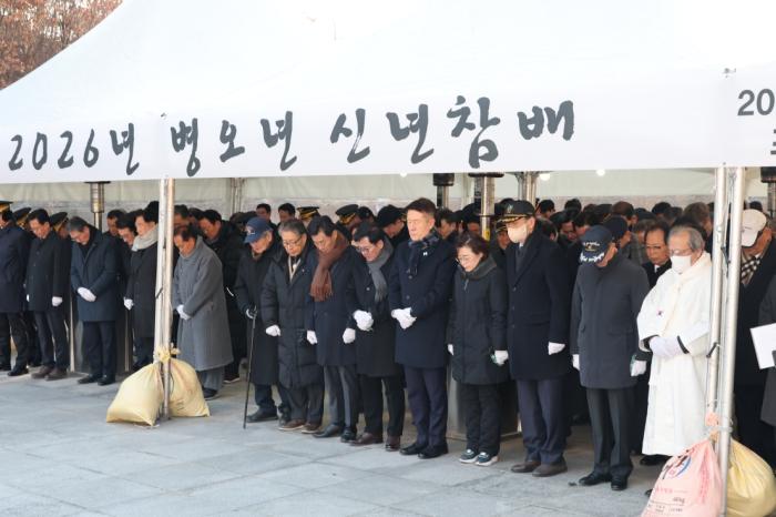 이날 참배에는 이강덕 포항시장을 비롯해 김일만 포항시의회 의장, 김정재 국회의원, 이상휘 국회의원, 시·도의원, 군 부대장, 보훈 단체장, 각급 기관·단체장 등 200여 명이 참석해 순국선열과 호국영령의 숭고한 희생정신을 기리고, 병오년 새해 힘찬 도약을 위한 각오와 결의를 다졌다.