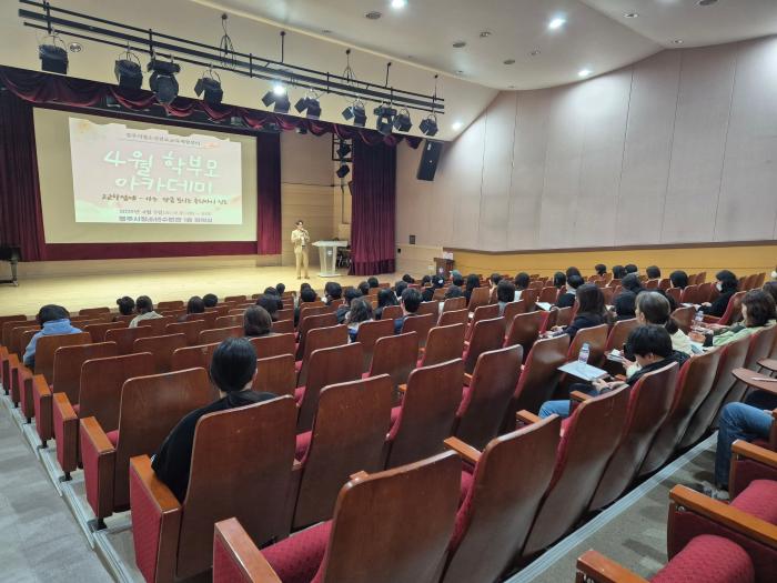 | 경주시 청소년진로교육체험센터가 운영한 학부모 아카데미에서 학부모들이 자녀 진로,진학 지도 방안에 대한 강의를 듣고 있다 |