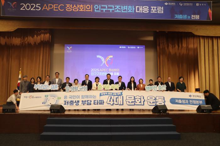 지난해 7월에는 ‘2025 APEC 정상회의’에 앞서 핵심 의제인 인구구조 변화 대응에 대한 지자체 차원의 선제적 지원에 나섰다. 2025년 7월 16일 경주에서 저출산고령사회위원회 부위원장, 도, 시군, 공공기관, 전문가 등 200여 명이 참석한 가운데, ‘APEC 정상회의 인구구조 변화 대응 포럼’을 개최했다.