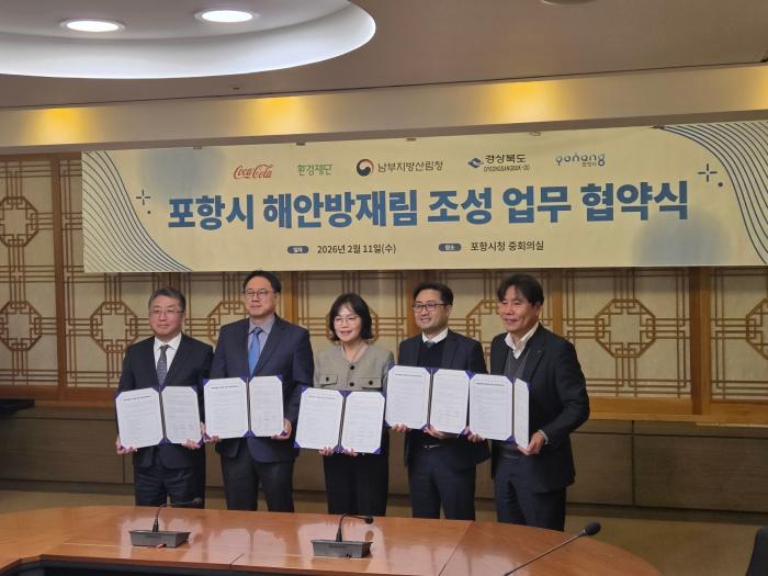 경북도산림환경연구원은 11일, 포항시청에서 한국 코카-콜라, 환경재단, 남부지방산림청, 포항시와 포항시 흥해읍 용한리 일원 해안방재림 조성사업을 위한 업무협약을 체결했다.