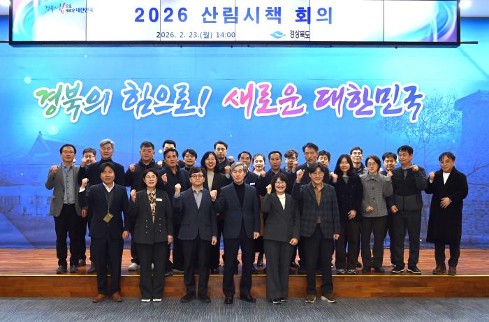 경북도는 23일 도청 화백당에서 22개 시‧군 산림부서장 등 100여 명이 참석한 가운데 ‘2026 산림 시책 회의’를 개최했다.