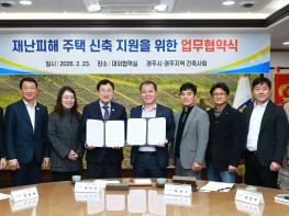협약에 따라 경주시는 재난 피해주택 신축 대상자에게 설계·감리비 감면 지원을 안내하고, 건축 인허가 등 관련 행정절차를 관계 법령이 허용하는 범위에서 신속히 처리하기로 했다.