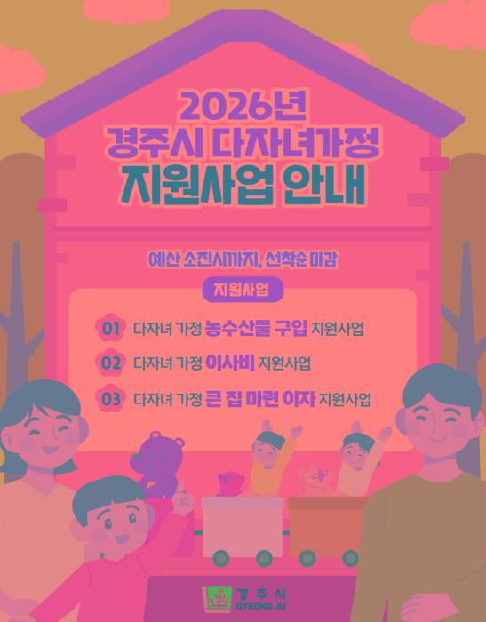 | 경주시가 3월부터 시행하는 2026년 다자녀 가정 지원사업 안내 홍보 /경주시 제공 |