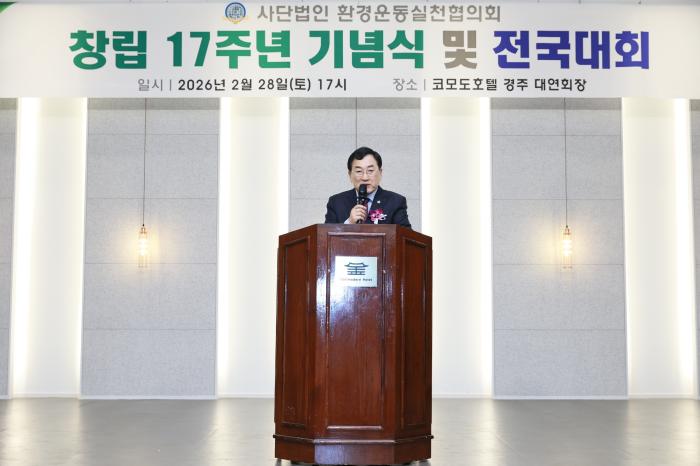 사단법인 환경운동실천협의회(총재 김헌규)는 지난 2월 28일 경주 코모도호텔에서 본부 및 전국 16개 지부, 39개 지회 임원과 내외빈 등 200여 명이 참석한 가운데 창립 제17주년 기념식을 개최했다.이날 행사는 2025년 경과보고를 시작으로 환경유공자 표창, 감사패 전달, 화합의 시간 순으로 진행됐다.