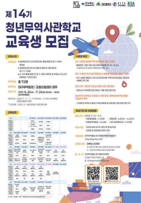 경북도는 한국표준협회 및 한국무역협회와 함께 실무형 청년 무역인재 양성을 위한 제14기 청년 무역사관학교 교육생을 모집한다.