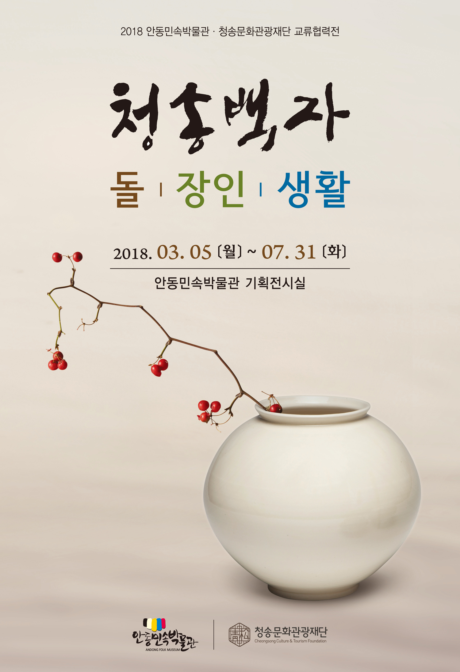 안동민속박물관이 (재)청송문화관광재단과 교류협력전 ‘청송백자-돌, 장인, 생활’을 3월 5일부터 7월 31일까지 안동민속박물관 본관 기획전시실에서 개최한다.
