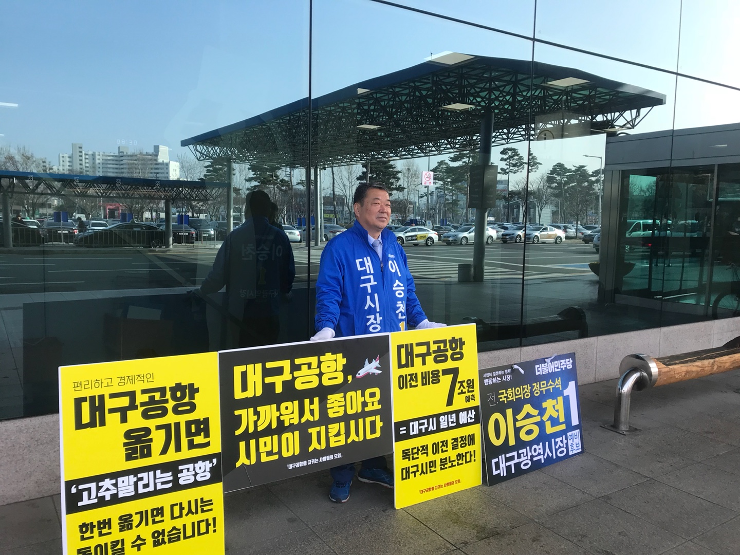 또한 “군사공항은 이전하고 대구공항은 유지하는 분리이전을 원하는 시민들의 여론 수렴이 선행되어야 하며, 필요에 따라서는 주민투표를 통해 결정해야 할 것”이라며 1인 릴레이 시위에 나섰다.