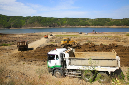 우선 지난 2월말부터 자체예산 10억원을 투입해 가도작업 및 준설 공사에 들어갔으며, 현재까지 약 20%의 진척을 보이고 있다. 그 동안 문화재지표조사와 강우로 인해 작업이 다소 지연됐으나 이달 중으로 25만㎥의 토사 준설을 마칠 예정이다. 또한 준설작업 시 흙탕물 발생 및 유입을 막기 위해 오탁방지망을 2개소 설치해 상수원 보호에도 만전을 기울이고 있다.