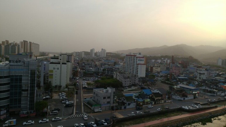 평소에는 희뿌연 곳에 아파트와 대구 월드컵축구 경기장이 보였지만 15일 오후 2시 미세먼지로 뒤덮여 있다