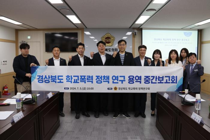 경북도의회 「학교폭력 정책연구회」(대표 손희권 의원)는 5일 10시 도의회 회의실에서 “경상북도 학교폭력 정책 연구 용역” 중간보고회를 개최했다고 7일 밝혔다.